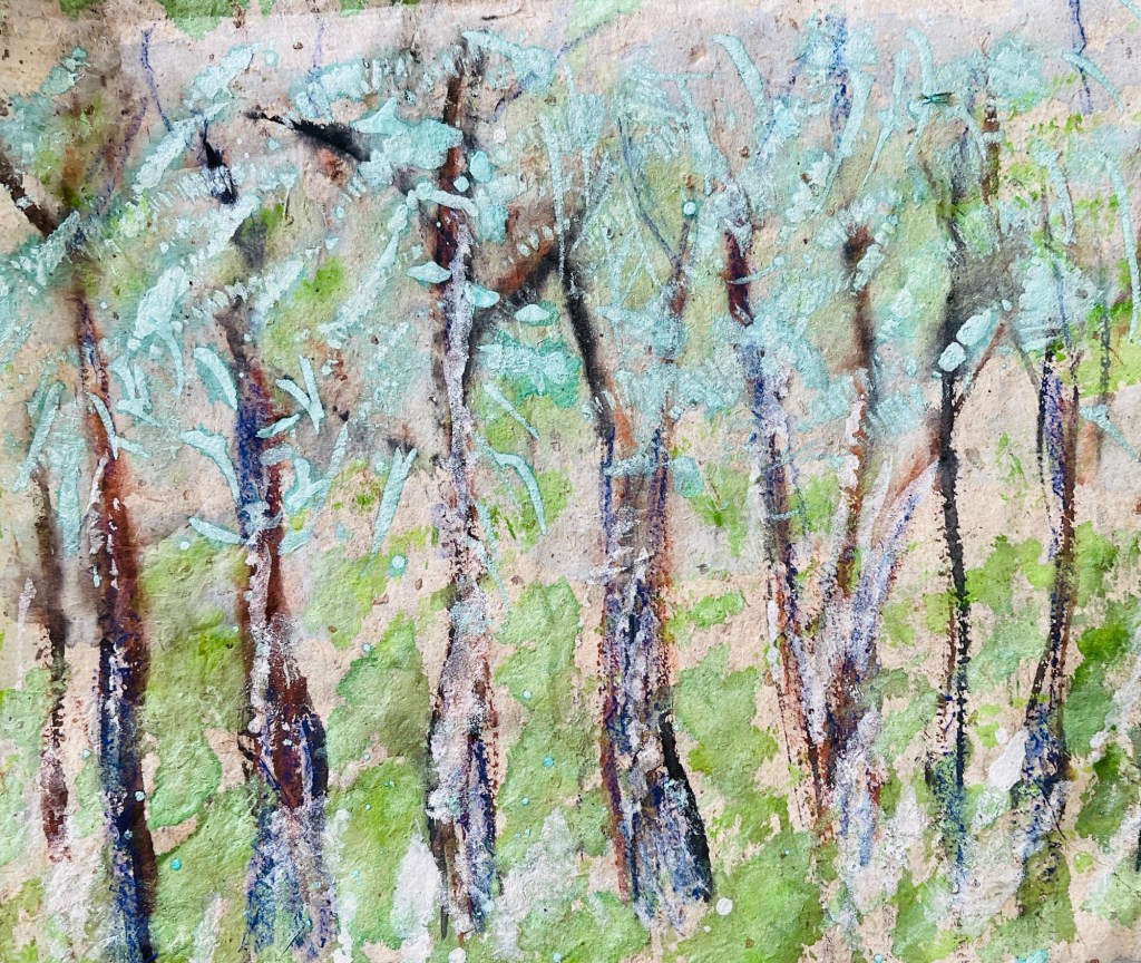 Adorno claims the painting manifests as a mediation: it acknowledges that our experience of “trees” here is filtered through pigment, paper, and artistic decision.