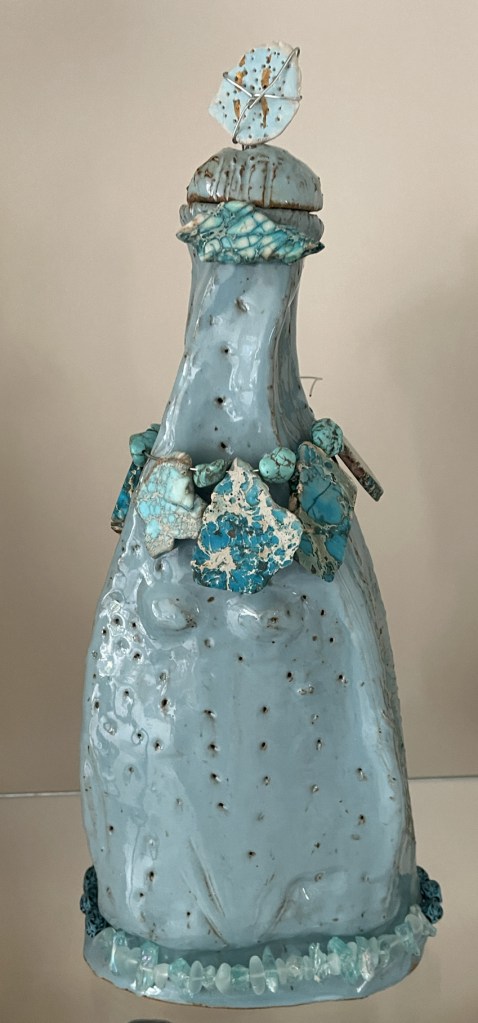 The Goddess cultures of the Paleolithic and Neolithic period, from approximately 40,000 BCE to 1200 BCE, honored earth as a living presence. The clay sculptures engage that tradition directly, as do the paintings in more elemental ways.