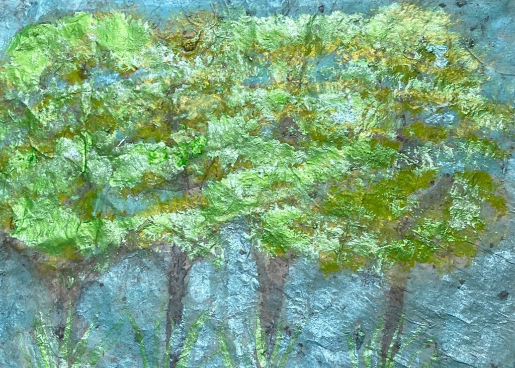 What emerges is not a finished statement, outcome or product, but —an invitation into the mystery, where viewers are asked not to interpret, but to inhabit. Each piece invites the viewer to approach the painting not as a thing, but as a threshold—an invitation to stand before the piece as before a mountain, or a flame, to encounter their own stillness, to be within the mystery.